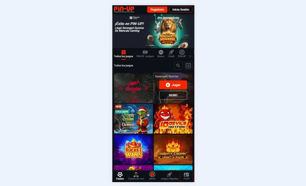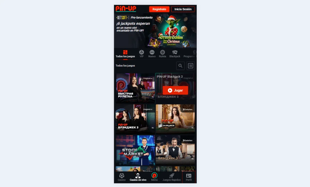 Tragamonedas, Juegos de Mesa y Casino en Vivo en la Pin-Up App